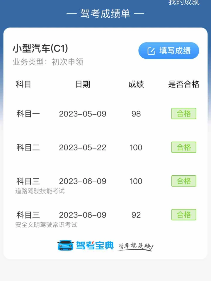 谢典~卸典了哈哈😄所有科目一把过,科目四没看完1700就迫不及待考了,但还是多次模拟考试了的。真正考的时候,有道交警的图片看不清😂😂看不清脸朝哪里……还有一道科目一的记不清了哈哈错了。倒数第二道爆胎要在路边紧急停车制动没有选😄这题有点绕。终于险些考过😃
