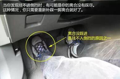 当你发现挂不进倒挡时,有可能是你的离合没有踩尽。这种情况,你只需要重新补踩一脚离合就好了。