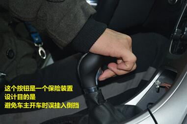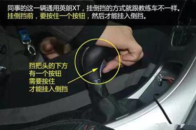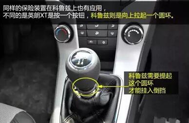 同事的这一辆通用英朗XT,挂倒挡的方式就跟教练车不一样。挂倒挡前,需要用手指把挡把下的一个按钮按住,然后再挂入倒挡的位置。这样设计的原理是,增加一个往上拉起的保险环节,避免车主在行驶中,误挂入倒挡造成意外事故。
