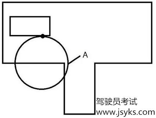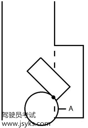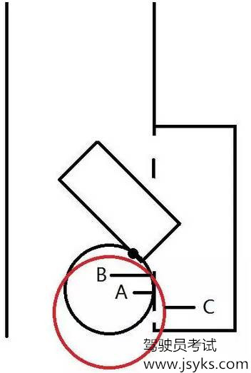 左打死早了,车按黑圆圈行驶,到A点车身走正,最终左轮压线。